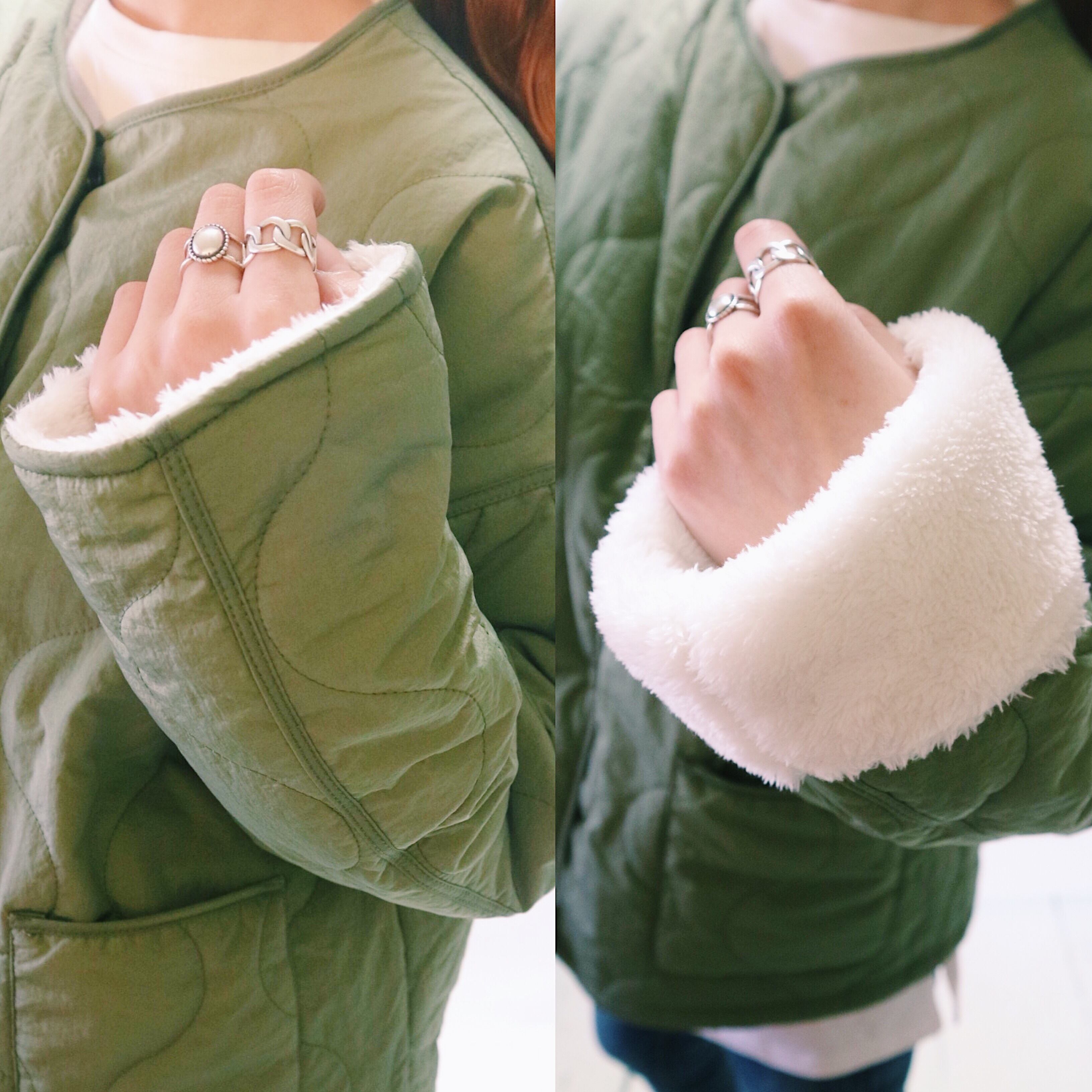 ▶︎キルティング面(カーキ)→ポケット2つ